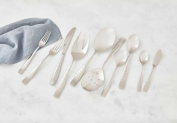 nambe Dazzle 45-Piece Flatware Set Service for 8 Plus Butter Knife, Sugar Spoon and 3 Piece Hostess Set, 18/10 Mirror Stainless Steel Silverware Cutlery Set, Dishwasher Safe