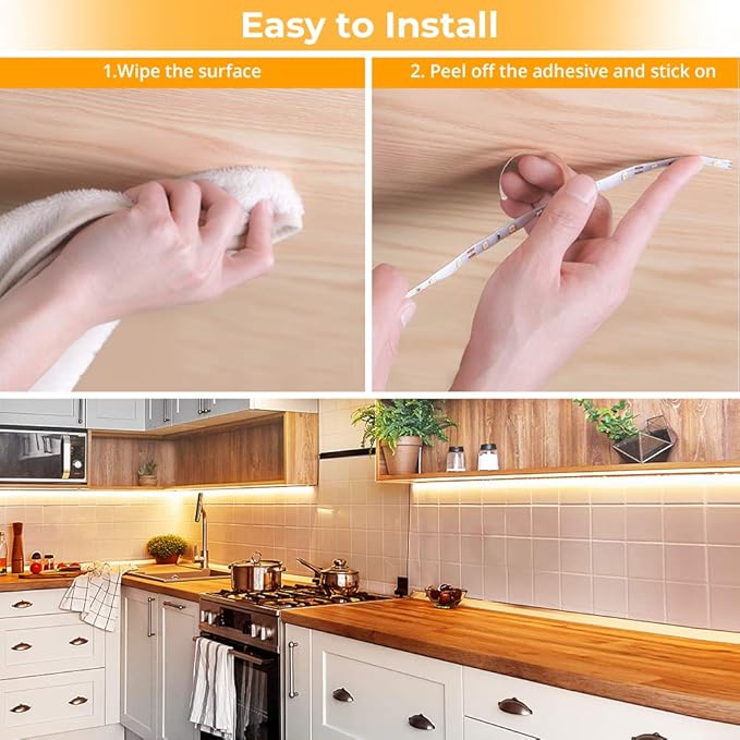 - Dim to Desired Level: 6 levels of brightness allow you to adjust your LED strip lights for any occasions. Simply use the control box to dim or brighten your under cabinet lights to the desired level. The LED lights is suitable as a room decor.
