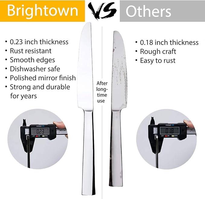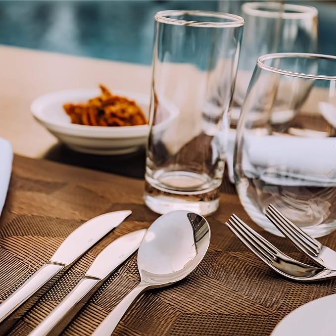 - Luxury and lustrous design: Unique yet extraordinary, this versatile stainless flatware cutlery set features a gleaming mirror polish which requires no repolishing. Elegant design and superior quality makes this silverware set suitable for kitchens,restaurants, events, and everyday meals