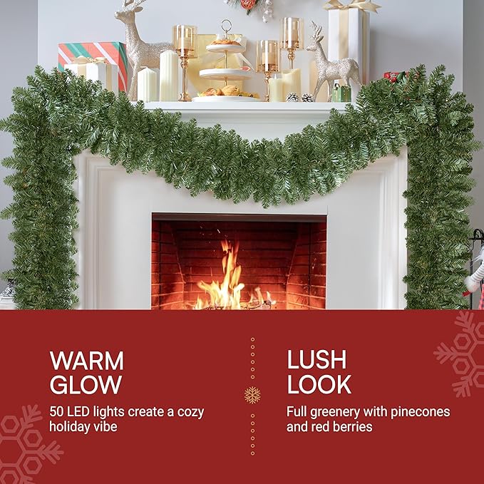 Joiedomi 9Ft Christmas Garland Prelit with 50 Count Light, Plug in Lighted for Home & Office Xmas Decorations Indoor and Outdoor Decor Holiday Decorations Xmas Garland Christmas Window Decor