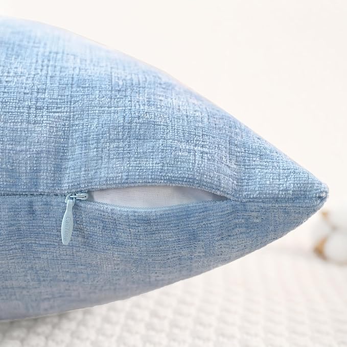 CaliTime Throw Pillow Covers Decorative 22 X 22 Inches Pack of 2 Cozy Chenille Cushion Cases for Couch Sofa Bed Living Room Home Baby Blue