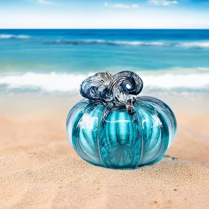 Luke Adams Glass Handmade Glass Pumpkins Handmade Table Top Home Decor (Squat, Lagoon)