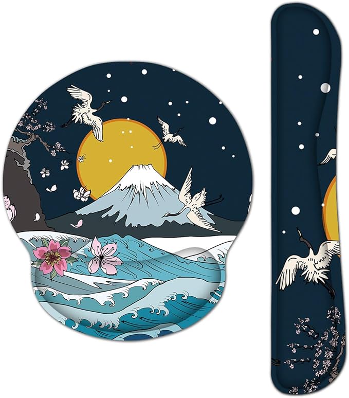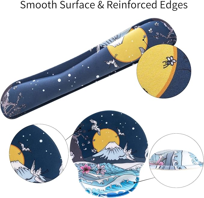 Ergonomic Keyboard Mouse Pad Wrist Rest Support Set for Laptop/Computer/Desktop,Memory Foam Hand Rest Wrist Cushion for Gaming/Office,Lightweight Comfortable & Pain Relief (Moon, Mountain)