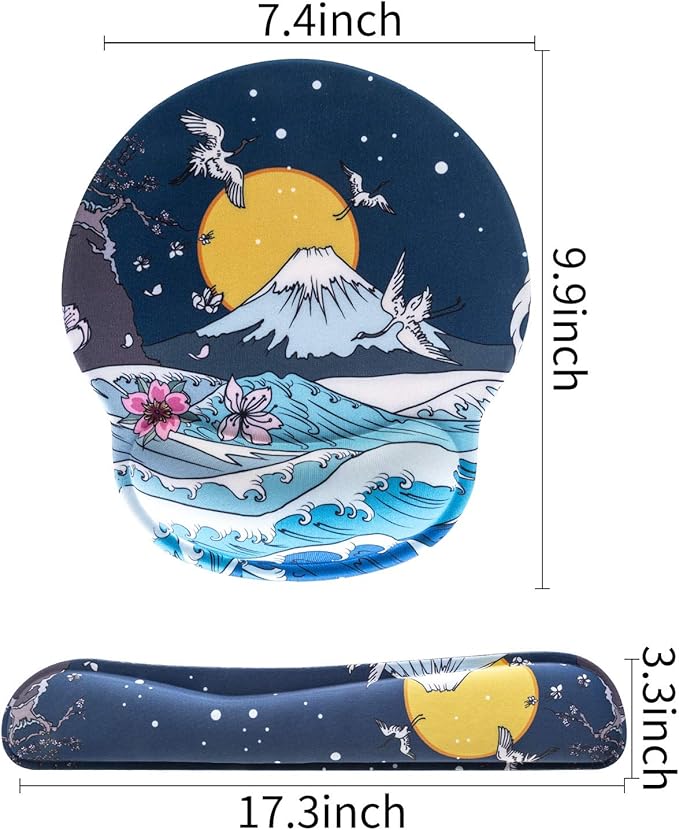 - 【Specifications】- The keyboard wrist support:44 x 8.4 x 2.5 cm(17.3 * 3.3 * 0.98 in), the mouse pad with wrist rest:25 x 18.8 x 2.5 cm(9.9 * 7.4 * 0.98 in).