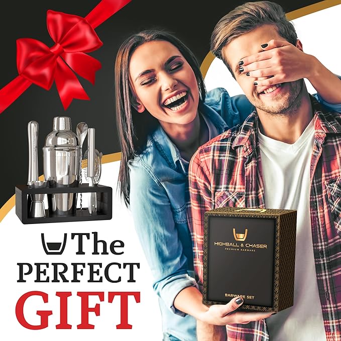 Highball & Chaser Cocktail Shaker Set: Bartender Kit for Home Bar Mixology Cocktail Bar Set Plus E-Book with 30 Recipes (Silver)