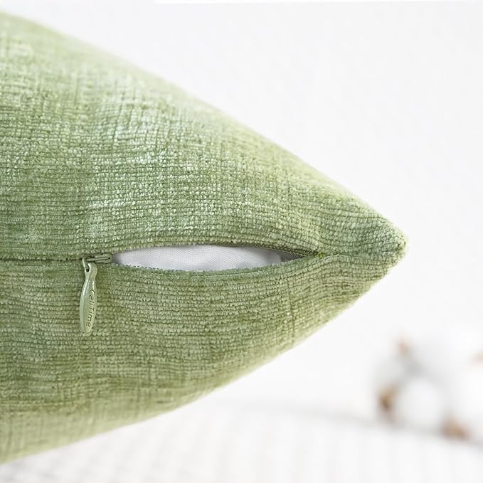 CaliTime Throw Pillow Covers Decorative 12 X 20 Inches Pack of 2 Cozy Chenille Cushion Case for Couch Sofa Bed Living Room Home Sage Green