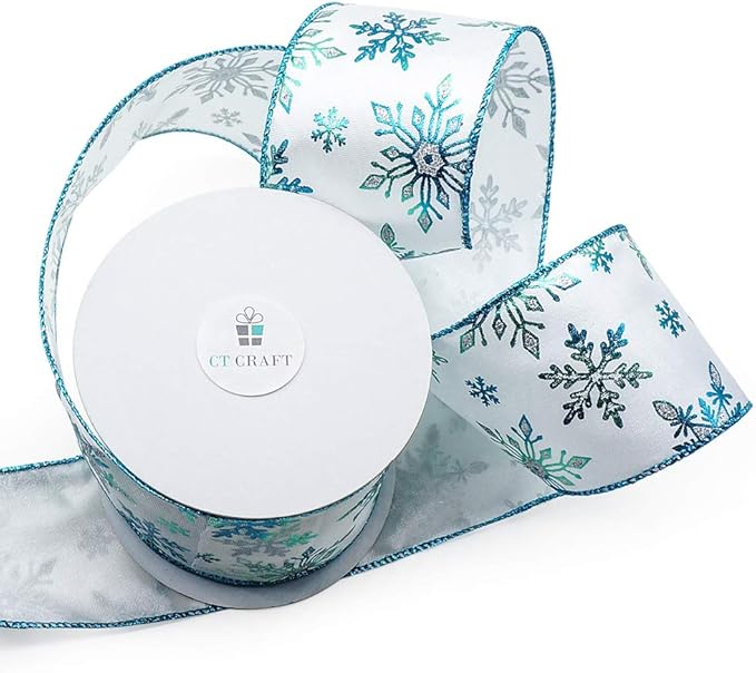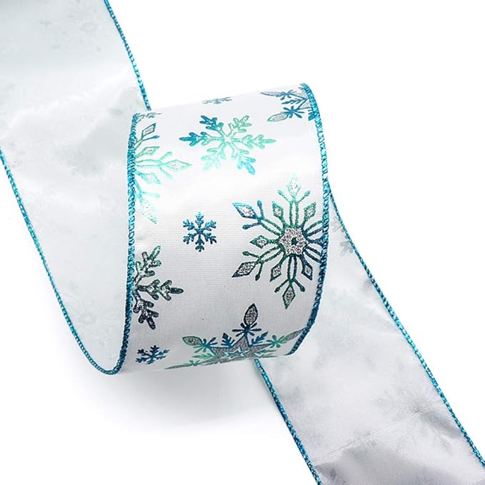 - EASY TO USE - The 10-yard long satin with blue snowflake wird ribbon 2.5" is enough for all the decorating and accenting your DIY Crafts. The satin with blue snowflake wird ribbon 2.5" is easy to use and won’t tangle. It can be tied or glued on gift packages and DIY craft projects such as car and chair bow, wreath, flower bouquet.