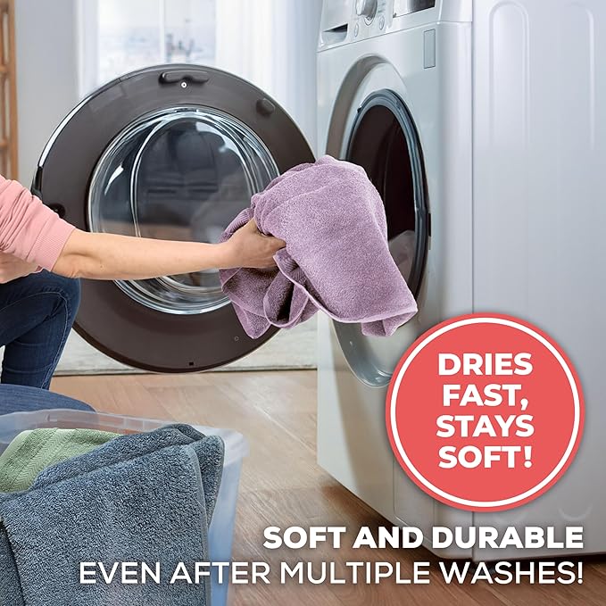 - [ SET INCLUDES ]: Our towel set includes 2 x Bath Towels (27x54 inches). These sizes of our bathroom towels are both functional and perfect for everyday usage and give your bathroom modern look with its twelve color options. Best towels for bathroom and our bath towels set are also suitable for gym, beach, spa, hotel, travel and more.