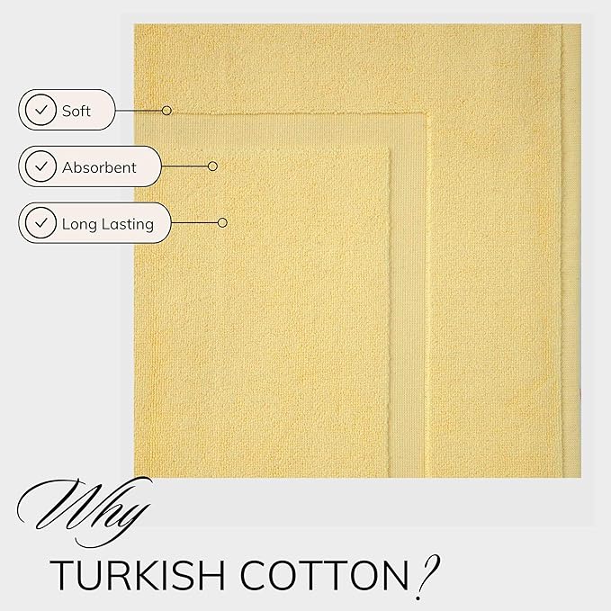 TEXTILOM Luxury 2 Pack Banded Cotton Bath Mats for Bathroom Floor [ Hotel, Spa, Tub, Shower Bath Mat Floor Towel Set ], Machine Washable & Soft & Absorbent & Quick Dry (20''x34'')- Yellow