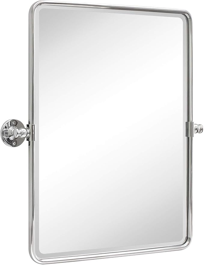 - Practical yet Beautiful Design: One of our best-selling rectangle pivot vintage bathroom mirror collection! Framed in metal for unrivaeld strength. Tilting up or down to adjust viewing angle for either standing or seated mirror use. Also this pivoting mirror is coming with an elegant and generous 3/4'' bevel. An easy fit in your bathroom aesthetics no matter it's Chic Modern or Rustic Farmhouse.