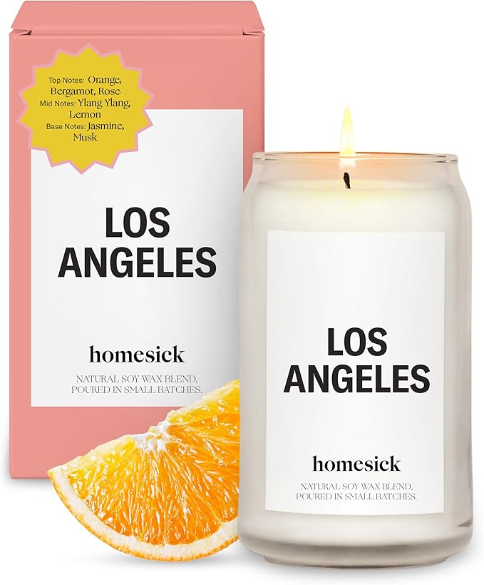 Homesick Scented Candles for Home (Los Angeles) - 13.75 oz Long-Lasting Soy Wax Jar Candle for Women & Men for All Occasions, 60-80 Hours Burn Time - Notes of Orange, Bergamot & Rose