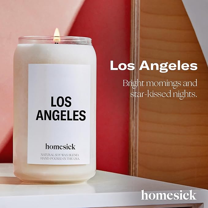 - City of Angels Essence: Bright mornings and star-kissed nights. Clean sea breezes and desert sand. Citrus notes perfectly paired with blossoming bouquets. The Los Angeles candle from Homesick captures the vibrant and diverse spirit of LA. 13.75 oz.