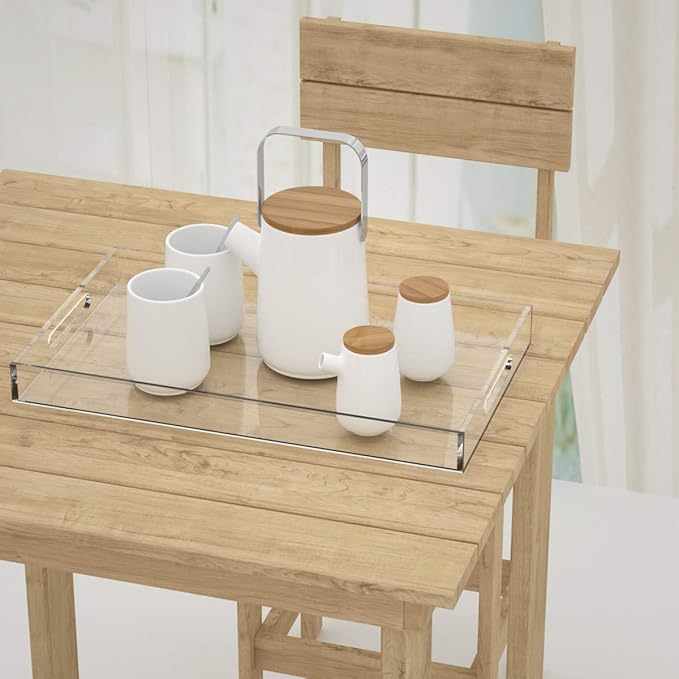 - Invisible Decorative Tray- The clear look of the tray take up little visual space,makes it easy to corral remote & magazines on coffee table,display toiletries on the dresser,keep things organized and easily retrieved.