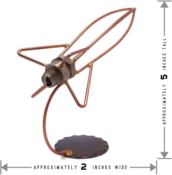 - ROCKET figure is crafted from nuts, brazing rods, washers, steel, and is great to use as a trophy or to accompany your business cards for a fun, eye-catching desk accessory. (The business cardholder may be purchased separately.) Approximately 2" wide by 5" tall.