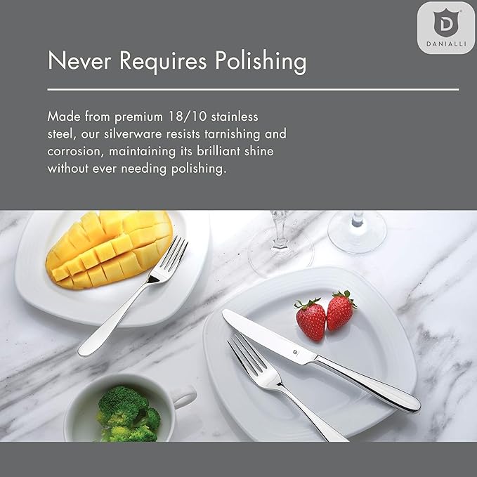 - Dishwasher Safe for Easy Care – Conveniently designed for busy households, this flatware set remains brilliantly polished and spotless after every dishwasher cycle.