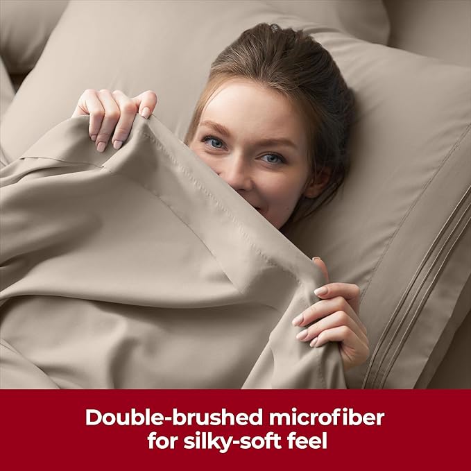- Complete 4-Piece King Bedding Set - Includes 1 Fitted Sheet (78"x80"x21"), 1 Flat Sheet (102"x105"), & 2 Pillowcases (20"x40") - all crafted from double-brushed microfiber for an ultra-soft feel. Temperature-regulating to keep you cozy in winter and cool in summer.