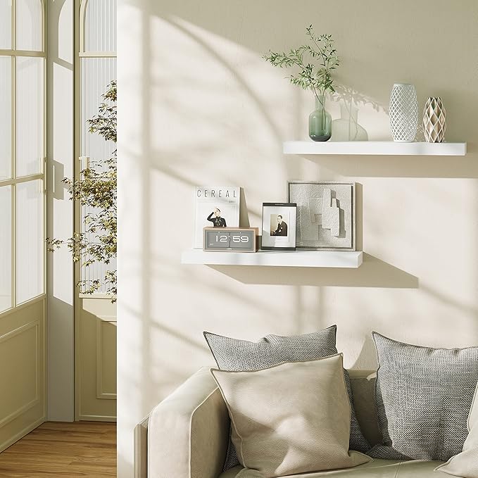 - Minimalist style:The minimalist design wall shelf full of modern styles, flat and solid shelves with white finish, can perfectly match any style of walls and rooms; Whether you want to display decoration or increase storage space, this minimalist wall shelf can meet your needs and add beauty to your life