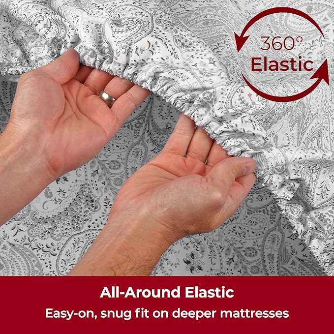 Mellanni Extra Deep California King Sheets - 4 PC Iconic Collection Bedding - Luxury, Ultra Soft, Cooling Bed Sheets - Wrinkle, Fade, Stain Resistant (Cal King, Paisley Gray)