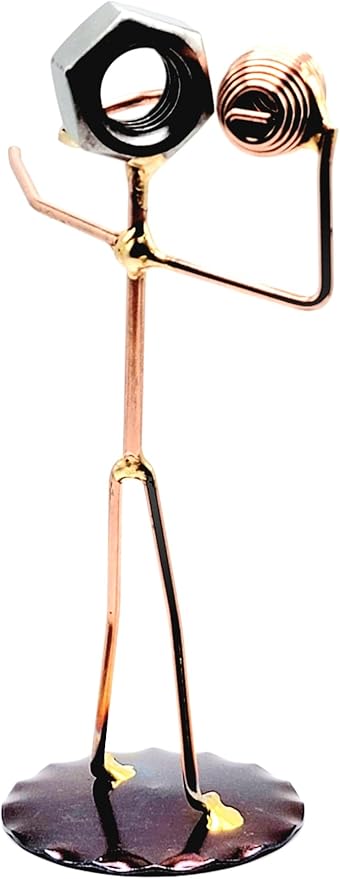 - FOOTBALL figure is crafted from nuts, brazing rods, washers and is great to use as a trophy or to accompany your business cards for a fun, eye-catching desk accessory. (The business cardholder may be purchased separately.) Approximately 5″ tall by 4″ wide.