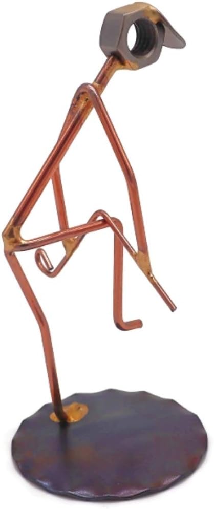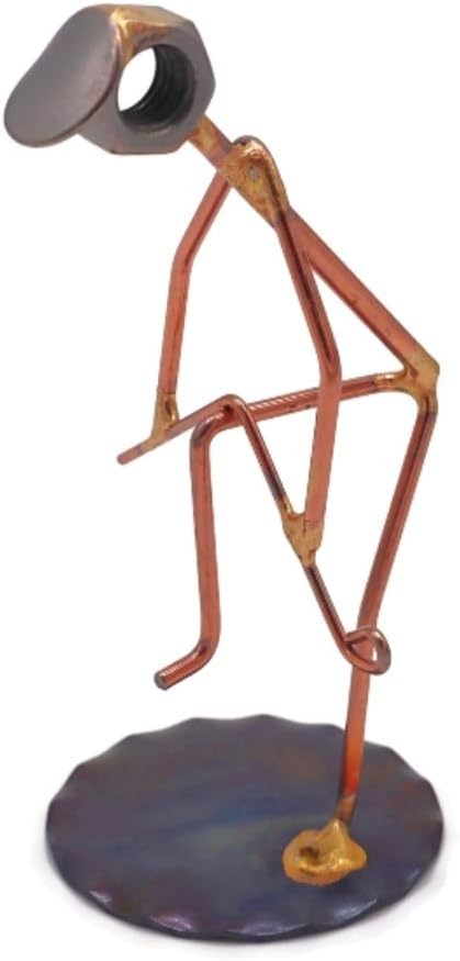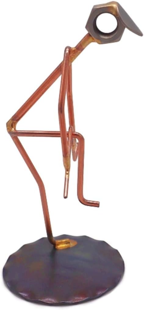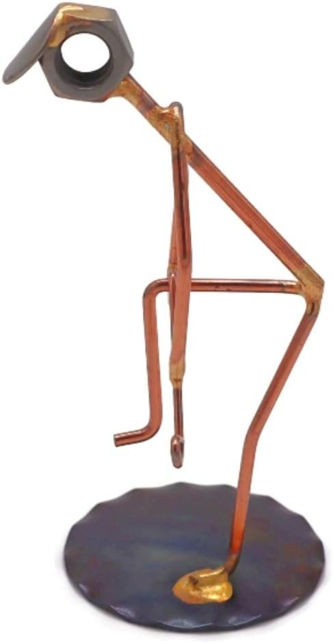 - Golfer Breaking Clubs figure is crafted from nuts, brazing rods, washers, and is great to use as a trophy or to accompany your business cards for a fun, eye-catching desk accessory. (The business cardholder may be purchased separately.) Approximately 2" wide by 4" tall.