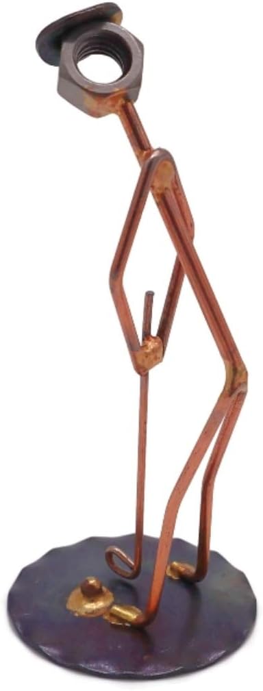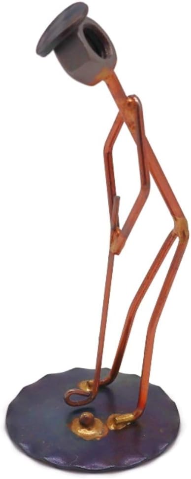 - GOLF PUTT MAN figure is crafted from nuts, brazing rods, washers, and is great to use as a trophy or to accompany your business cards for a fun, eye-catching desk accessory. (The business cardholder may be purchased separately.) Approximately 2" wide by 4" tall.
