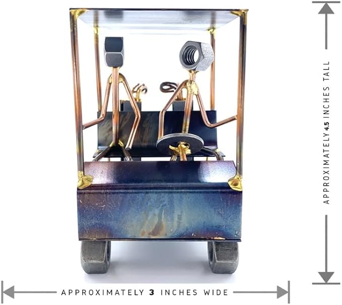 - GOLF CART WITH 2 GOLFERS figure is crafted from nuts, brazing rods, washers, steel, and is great to use as a trophy or to accompany your business cards for a fun, eye-catching desk accessory. (The business cardholder may be purchased separately.) Approximately 3" wide by 4" tall.