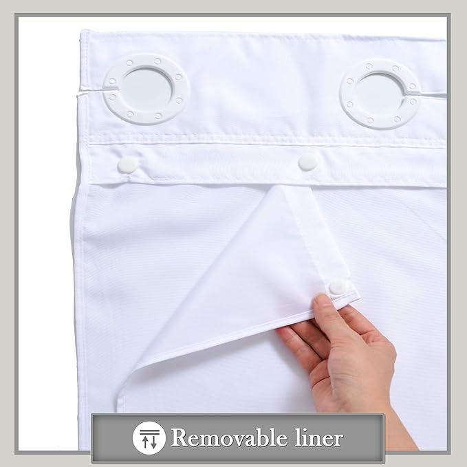 - Removable Inner Liner Design : This high quality shower curtain with a removable snap-in liner, easy to clean and replace if it dirty.