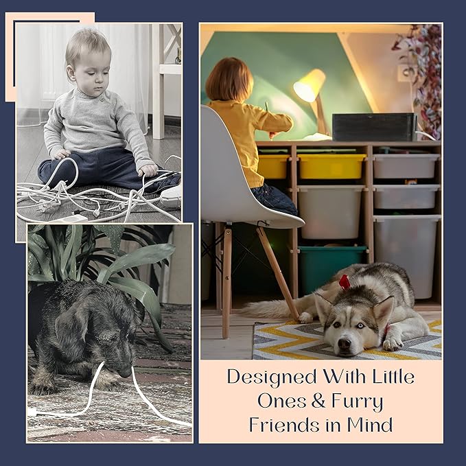 - DESIGNED WITH LITTLE ONES AND FURRY FRIENDS IN MIND: Featuring a magnetic lid and ventilation holes, this cord hider box power strip cover helps protect kids and pets