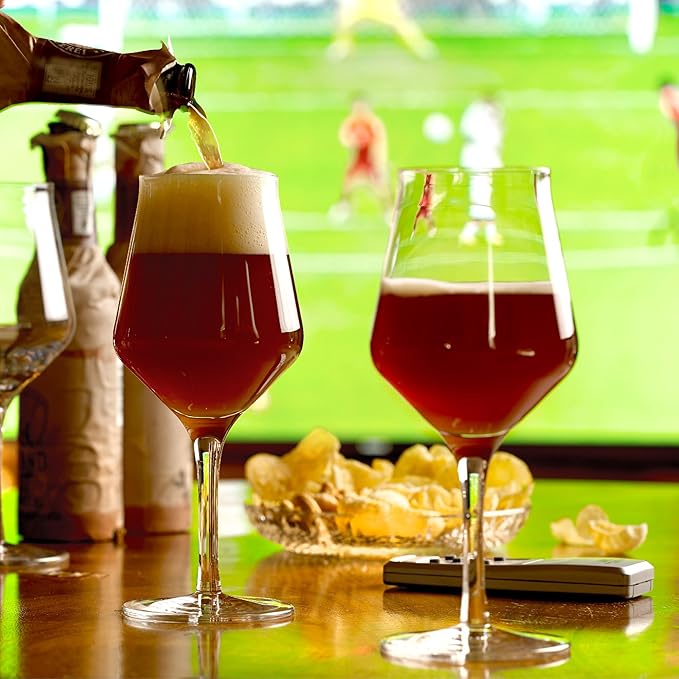 - SET OF 6 PREMIUM CRAFT BEER GLASSES - enrich your beer-tasting experience with these expertly designed craft beer glasses with a sleek long stem and generous wide bowl, perfect for enhancing the rich flavors of your favorite brews