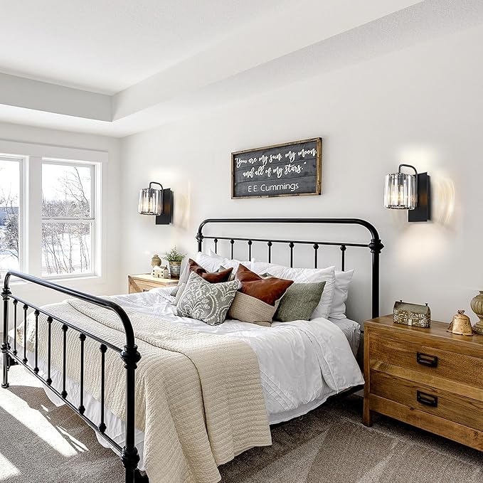 - Wide Application: The crystal sconce are suitable for indoor use. Indoor wall sconce can be used in your bedroom, headboard, living room, porch, entrance, garage, dining room, office, etc and so on. Flush mount wall sconce non-blinking lights and zero glare prevent eye strain and provide a comfortable ambiance. These elegant and unique organic clear black sconces can provide softer, warmer, and more accurate lighting effects, suitable