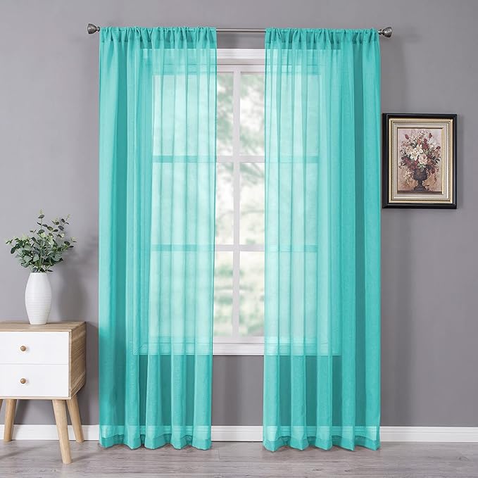 - Light Filtering: The linen look aqua blue sheer curtains can allow the right amount of natural light through to bring your room a hazy and softer vision, keep you away from someone’s glance from outside and provide you some privacy.
