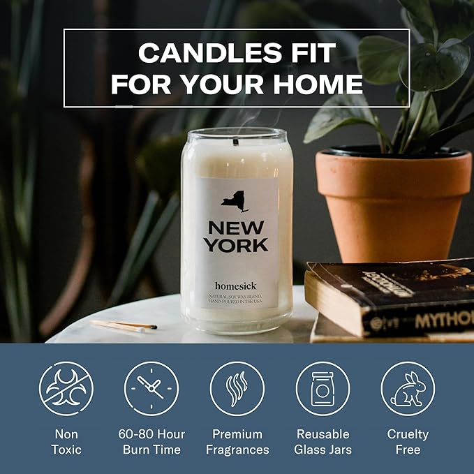 Homesick Scented Candles for Home (New York) - 13.75 oz Long-Lasting Soy Wax Jar Candle for Women & Men for All Occasions, 60-80 Hours Burn Time - Notes of Nutmeg, Cinnamon & Clove