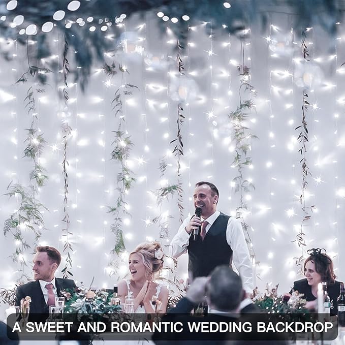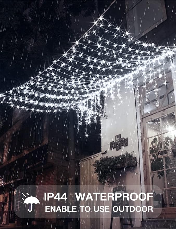 - [IP44 WATERPROOF/ SAFETY] The IP44 waterproof grade is adequate protection against rain and snow, which means the white curtain lights can be used outdoor safely. (Note that the USB is not waterproof.) Curtain fairy lights and the USB will always keep a low temperature. It’s 100% safe to touch.