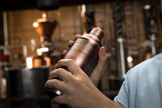 Mint & Mortar Cocktail Shaker Set, 7-Piece Bartender Kit with Stand, 24oz Martini Shaker Bottle Stainless Steel Bar Tools, Home Bar Accessories Drink Mixer, Barware Gift Set - Brushed Copper
