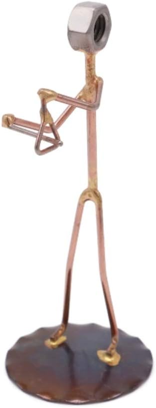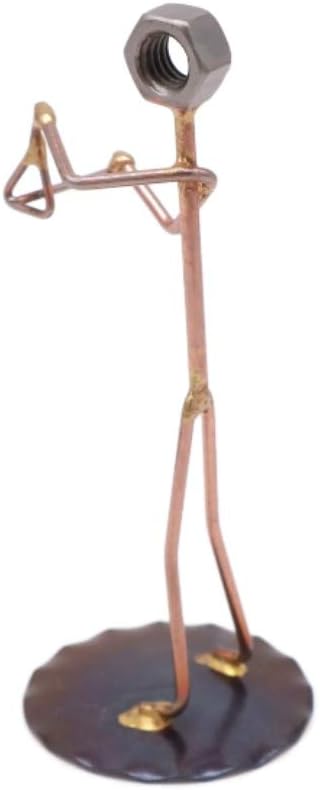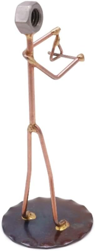 - TRIANGLE PLAYER figure is crafted from nuts, brazing rods, washers, steel, and is great to use as a trophy or to accompany your business cards for a fun, eye-catching desk accessory. (The business cardholder may be purchased separately.) Approximately 2" wide by 5" tall.