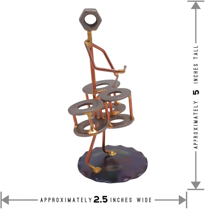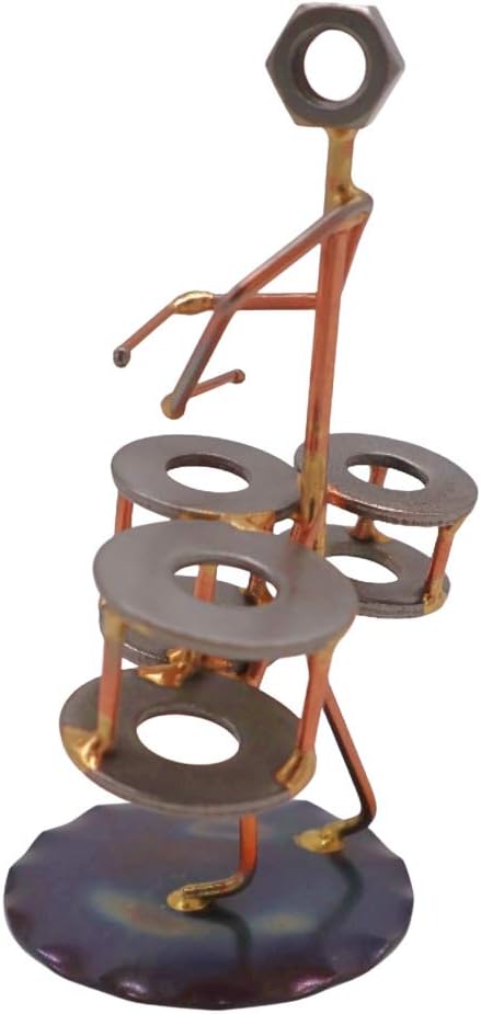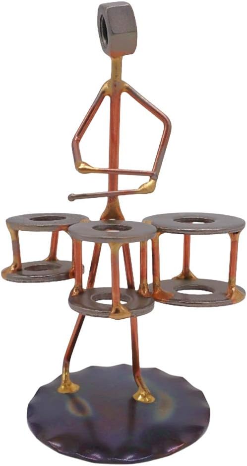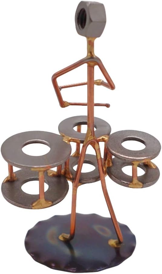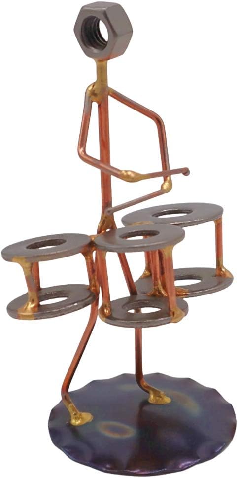 - MARCH DRUM TRI figure is crafted from nuts, brazing rods, washers, steel, and is great to use as a trophy or to accompany your business cards for a fun, eye-catching desk accessory. (The business cardholder may be purchased separately.) Approximately 2.5" wide by 5" tall.
