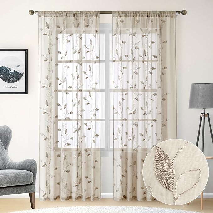 - ★ELEGANT DESIGN: Pretty embroidered leaves on the sheer curtains creating a refreshing, natural and elegant sense to your room, bringing unique aesthetics to your room and making it the best home decor item!