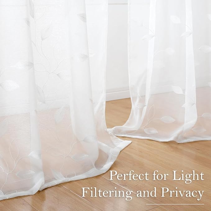 - ★ELEGANT DESIGN: Pretty embroidered leaves on the sheer curtains creating a refreshing, natural and elegant sense to your room, bringing unique aesthetics to your room and making it the best home decor item!