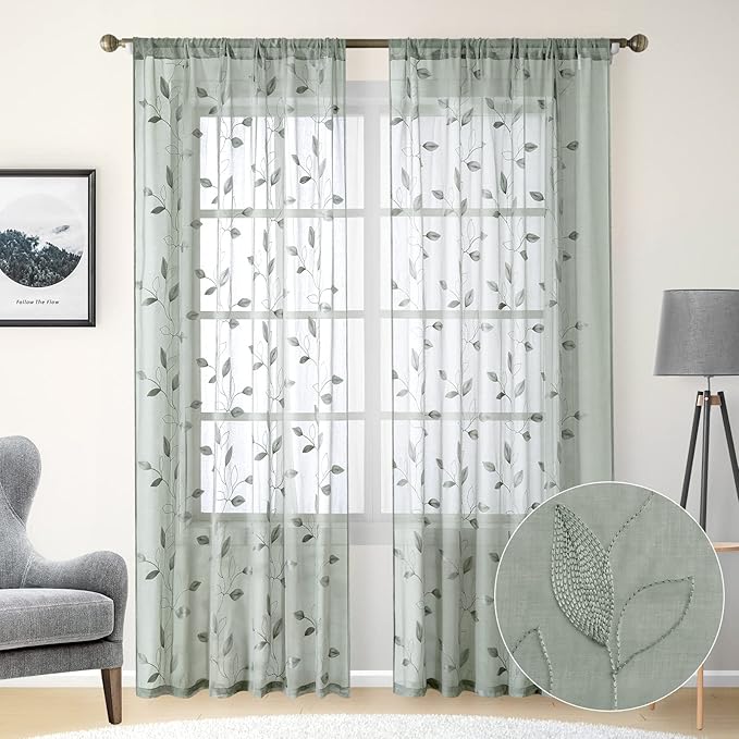 - ★ELEGANT DESIGN: Pretty embroidered leaves on the sheer curtains creating a refreshing, natural and elegant sense to your room, bringing unique aesthetics to your room and making it the best home decor item!