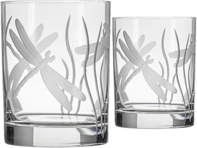 Rolf Glass Dragonfly Double Old Fashioned Glass | 13oz Etched Whiskey Tumbler | Set of 2 | Lead-Free Etched Glassware | Made in the USA (Set of 2)