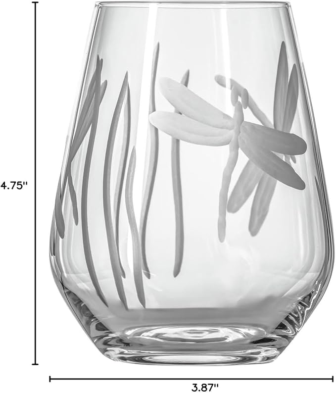 Rolf Glass Dragonfly Stemless Wine Glass 18oz - Tumbler Wine Glasses Set of 2 – Made in the USA - Etched Stemless Wine Glasses -(Set of 2)