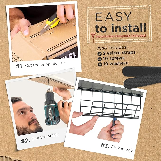 - Endless Length Options: The under desk cable tray set contains 2 straps and 2 wire trays, 17” (43cm) each, giving you a total of 34” (86cm) of wire management under desk. Compatible with CubiCubi and Mr Ironstone desks thicker than ¾”.