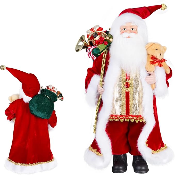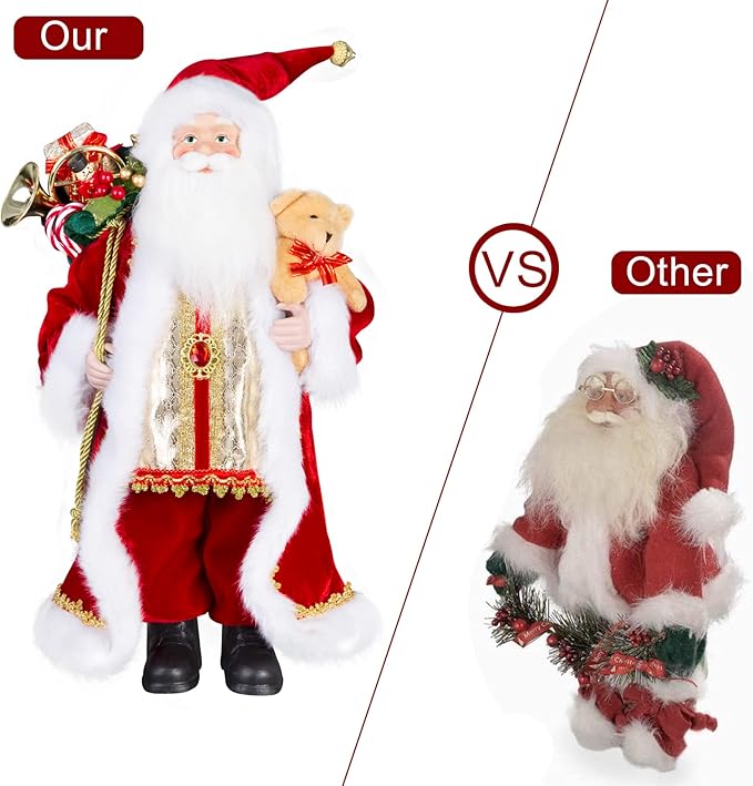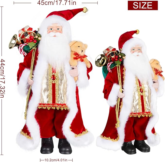 - 🎅Christmas Decorations★Reliable Material: 18-inch height Santa Claus Figurines Made of high-quality and durable cloth + plastic, soft and comfortable to the touch, and the cute shape is very suitable for Christmas decoration.
