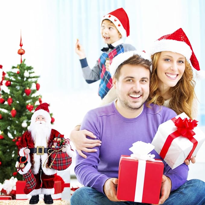 Uten 18" Santa Claus Decorations, Standing Christmas Santa Claus Figurine Figure Decor Christmas Sock and Gifts Bag Christmas Decoration Indoor, Birthday Gifts (Red)