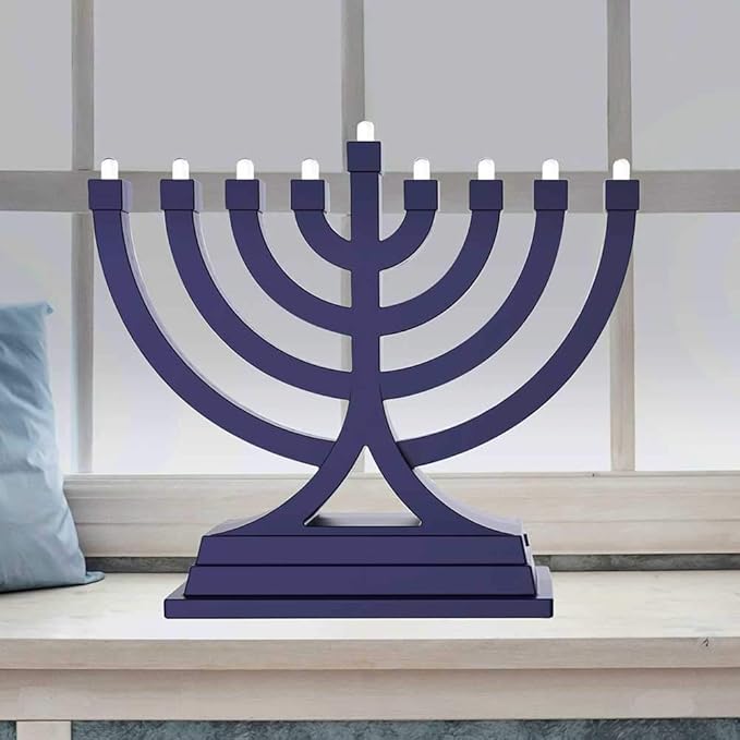 - This Adorable cute petite Menorah has it all, Traditional charm and trendy square edges, LED practical lights with convenient multiple powering options.