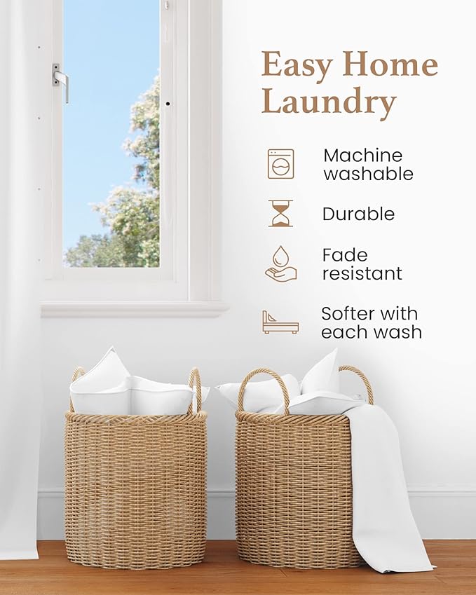 - Easy Care: Machine wash white sheet set queen with a gentle cycle using a mild detergent, and tumble dry on low heat or delicate setting to maintain their softness and quality. Our white queen bed sheets packaging focuses on sustainability and packed in reusable cotton bags.