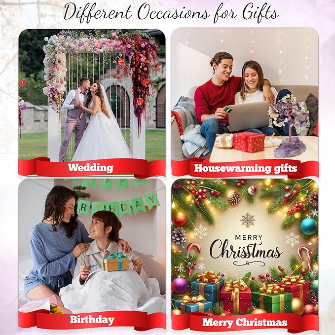 Amethyst & Citrine Crystal Tree with Cluster Base Tree of Life Decor for Shelf, Bedroom, Birthday Gifts for Women, Sister Gift, Birthday Gifts for Mom, Cute Home Office Decor Housewarming Present