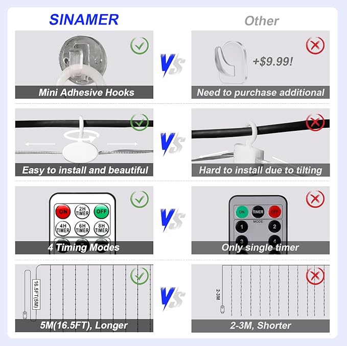- 4 Timing Mode and Safe to Touch: The 5V low voltage makes it safe to touch, while the four convenient timing modes allow you to choose 2, 4, 6, or 8 hours of lighting, followed by 22, 20, 18, or 16 hours off, providing more options to set the perfect ambiance while conserving energy