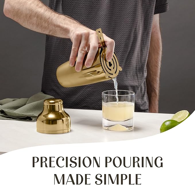 - ADDED FUNCTIONALITY: Calling all mixologists! This cocktail shaker kit tackles one of every bartender’s pet peeves... spills. The shaker lid features a smooth-release design for effortless separation after mixing. Attention to detail like this elevates the set into a truly premium cocktail experience.