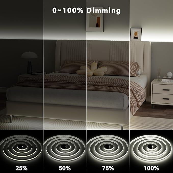 - 【Tunable White COB LED Strip Light】Dimmable white light from warm white to cool white (2700K-6500K),whether you are relaxing or working,one light to meet all your needs! With 1920LEDs,PAUTIX Tunable COB led strip light creates super bright and even lighting performance.Anti slip buckle design, connection is not easy to loose